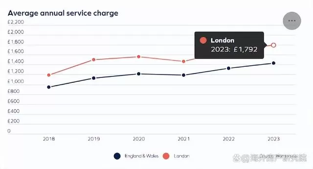 英国物业费的平均水平根据不同城市和不同房屋类型和大小会有所不同,据英国知名房产机构Hamptons所做的调查显示,2023上半年,伦敦地区的平均物业费达到了1,792镑每年,与2018年相比上涨超过50%。