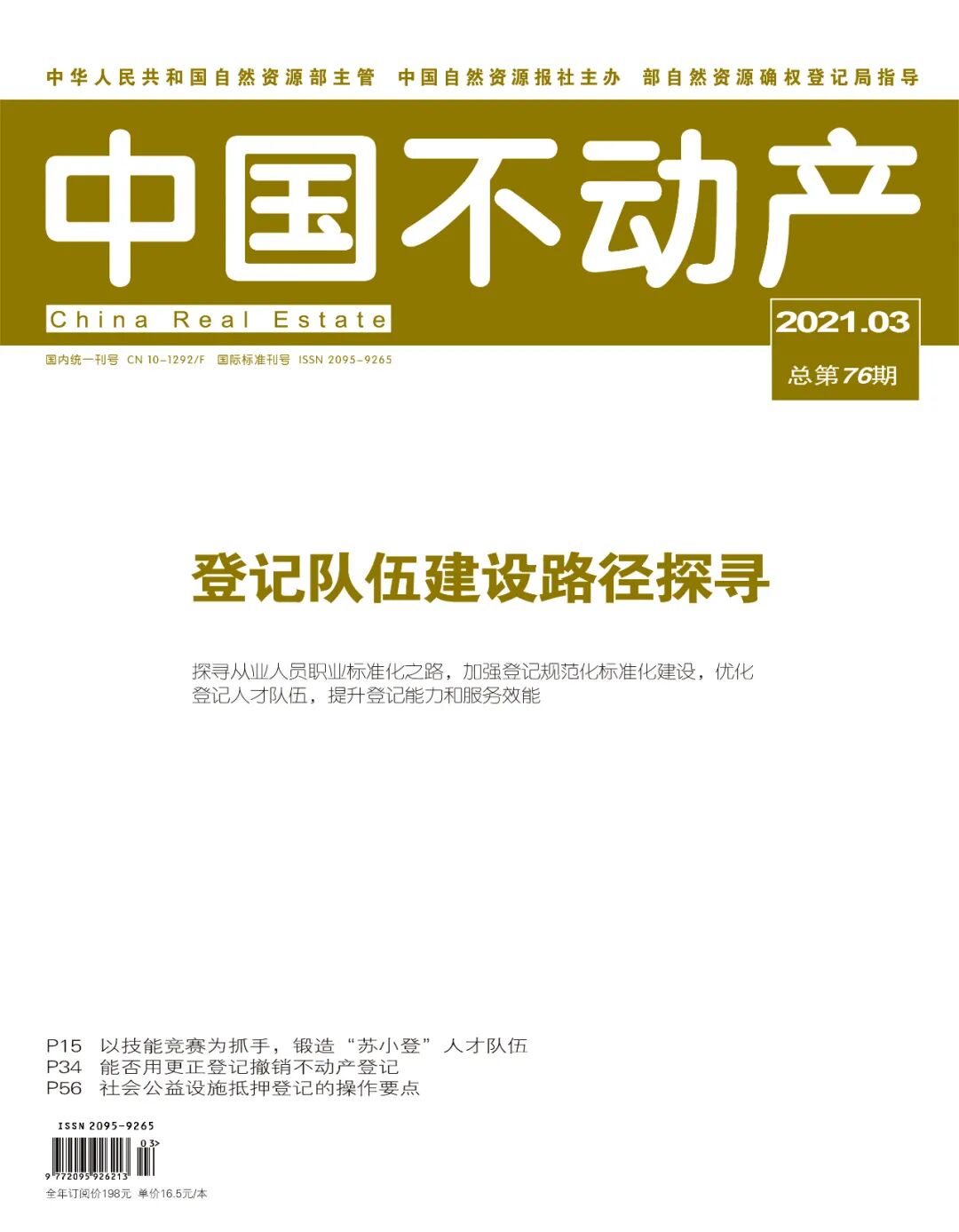 《中国不动产》(月刊)创刊于2015年1月。国内统一连续出版物号为CN10-1292∕F,国际标准刊号ISSN2095-9265。